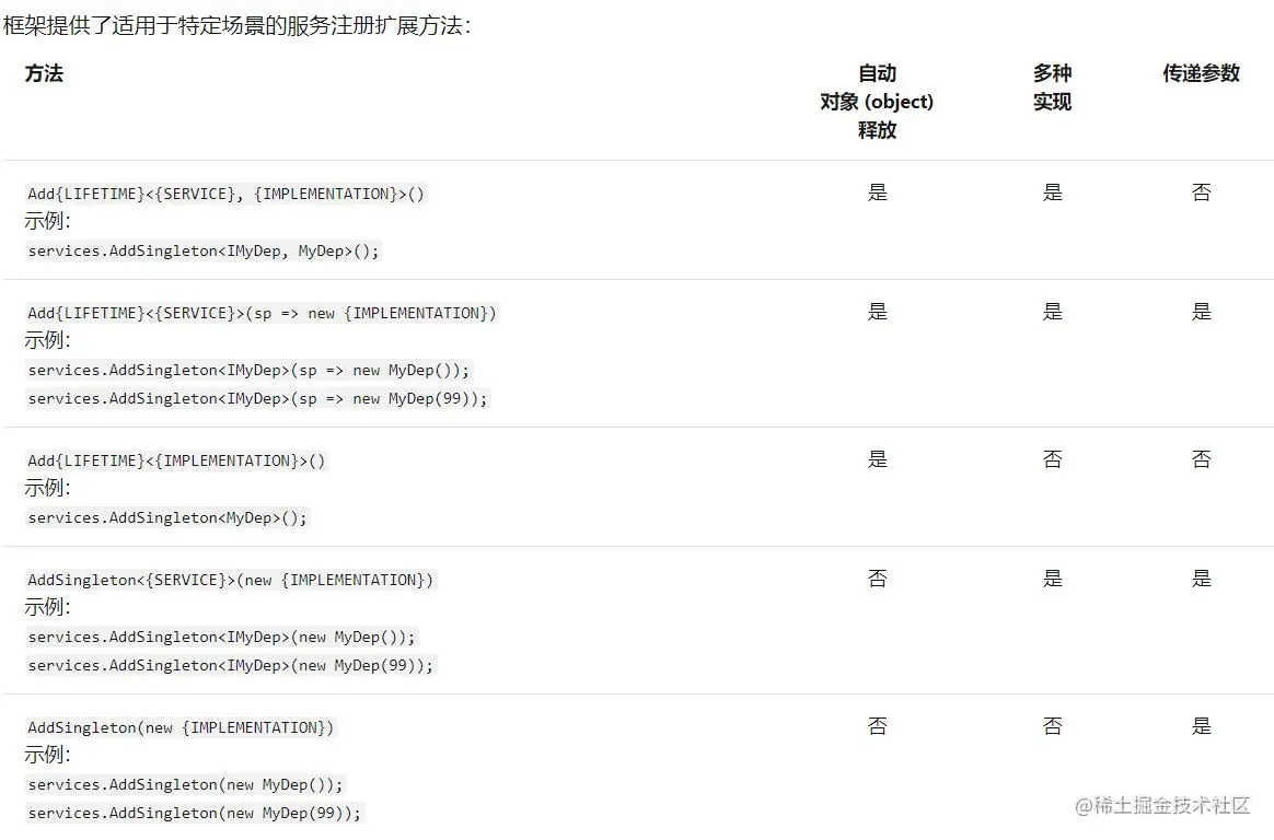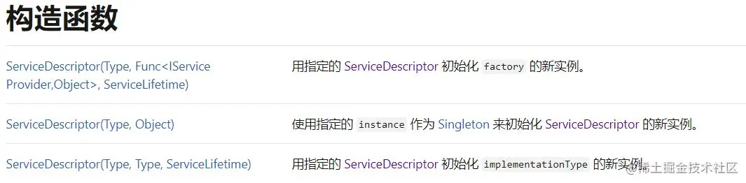 IServicesCollection的Add方法接受一个ServiceDescriptor对象为参数,以下是官方文档给出的构造函数: