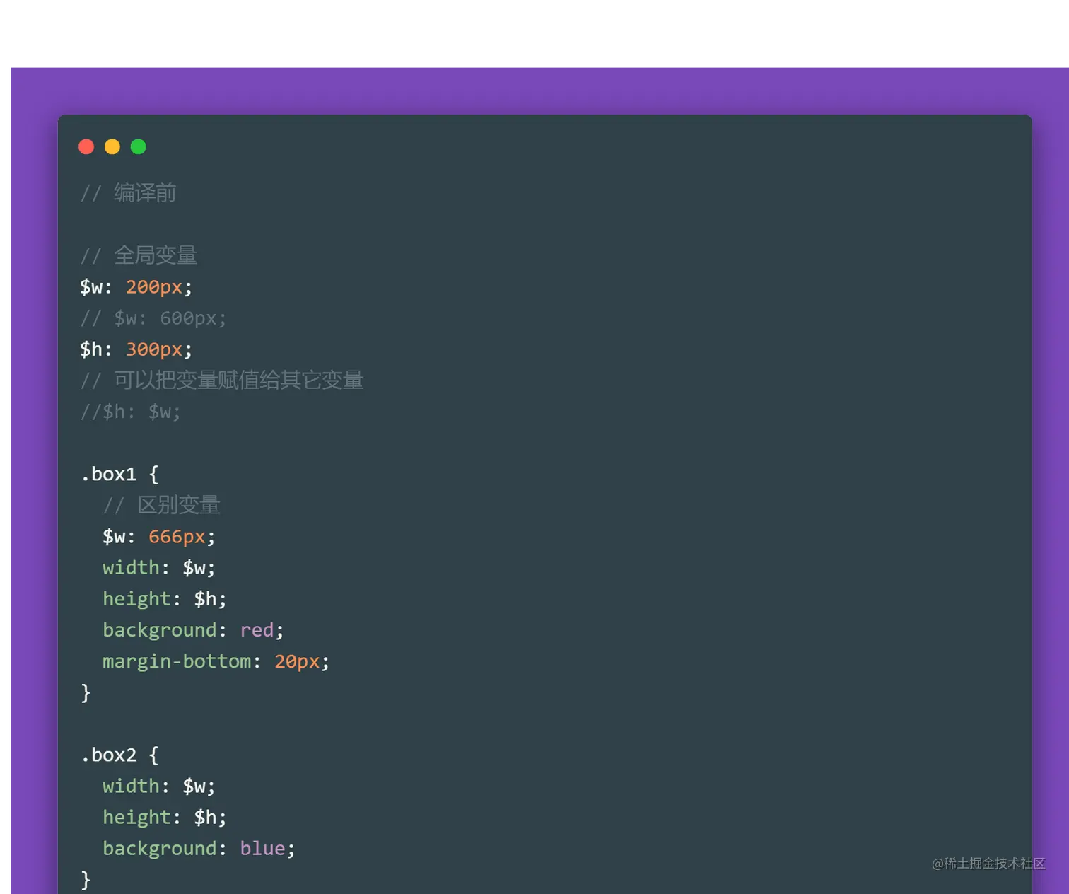 从零玩转Sass处理器(三) Sandy 2020-11-09 119 阅读1分钟 Sass中的变量 01-Sass中定义变量 $变量名称: 值 02-Sass中变量的特点 后定义覆盖先定义 可以把变量赋值给其它变量 区分全局变量和局部变量(访问采用就近原则) 必须先定义后使用 那么废物不多说,我们直接上代码
