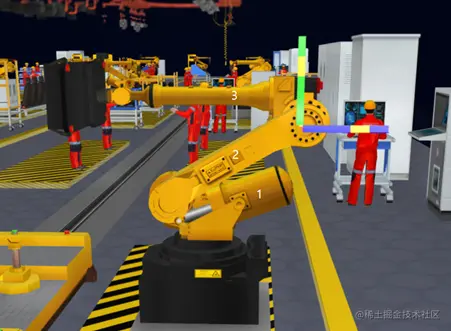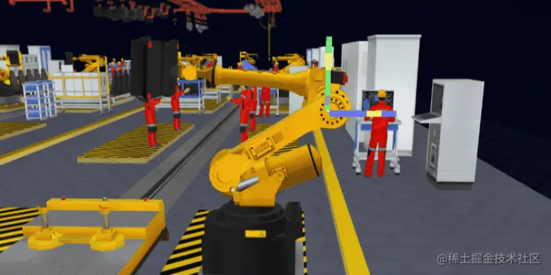 该项目中一个比较复杂又经常用到的设备就是机械手。场景中的机械手又分为不同的类型,有的是抓手,有的是吸盘。同时,每个机械手都拥有多个运动臂和多个运动轴。