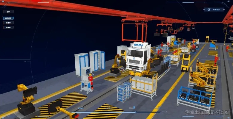 图扑重卡组装车间:hightopo.com/demo2/truck…