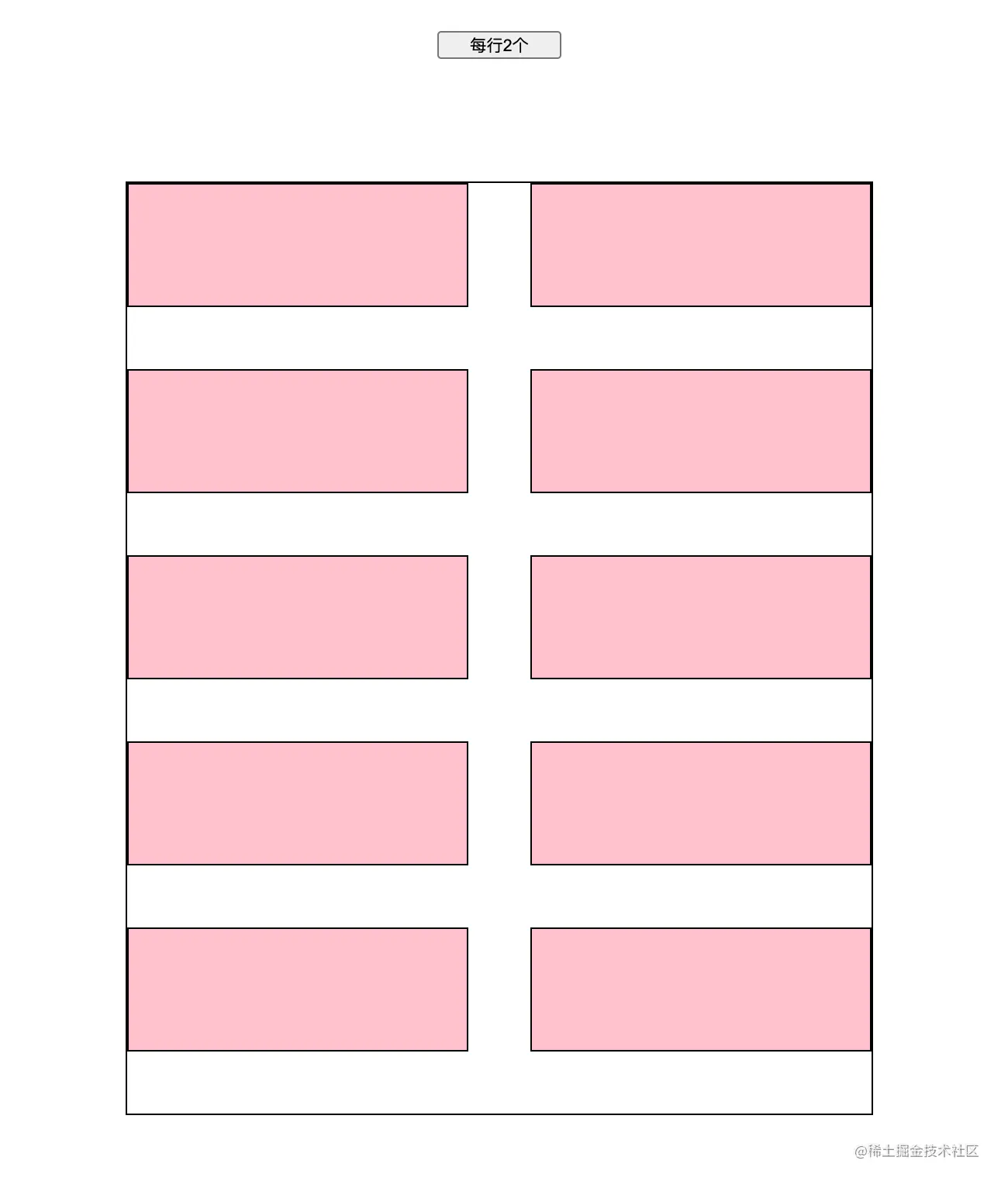 *{ margin:0px; padding: 0px; box-sizing: border-box;}.box { width: 600px; margin: 100px auto; outline: 1px solid; display: flex; flex-wrap: wrap; list-style: none; align-content: flex-start; .item { width: 100px; border: 1px solid; height: 100px; background-color: pink; }}