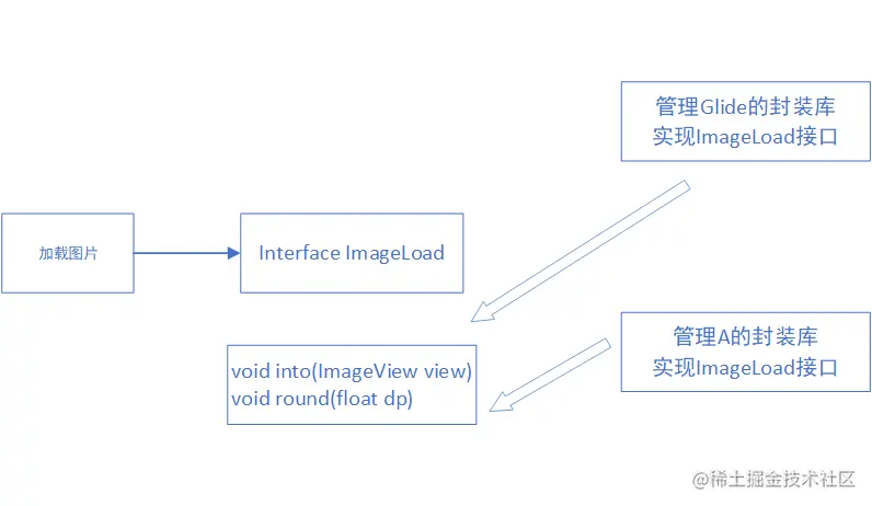 项目中假如有一个场景是,实现图片加载时,考虑目前Glid加载图片的替换性,即以后可能会用其它更好的技术A替代它,你如何实现。项目在不断发展,技术也在不断更新,这也是有可能的。
