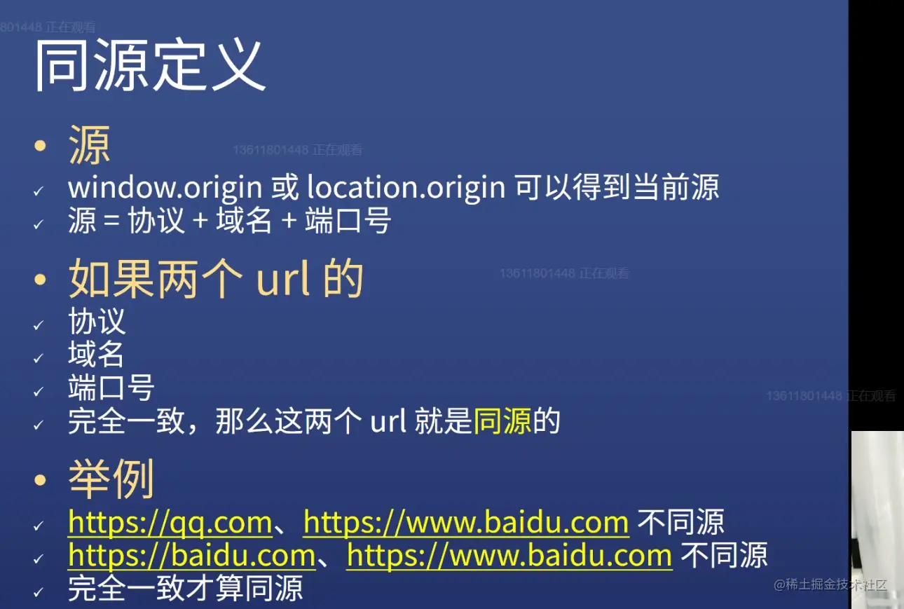 两个网站的域名,协议,端口三者必须一致才叫同源