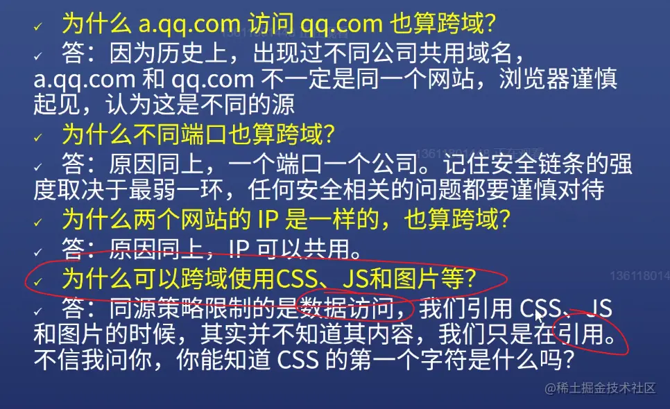 一个域A的页面去请求另一个域B的资源,这就存在要突破浏览器的限制了 只要两个网站之间的主域名不同,子域名不同,端口不同,协议不同,其中有一项满足,则算跨域