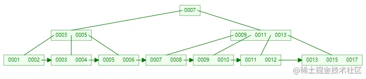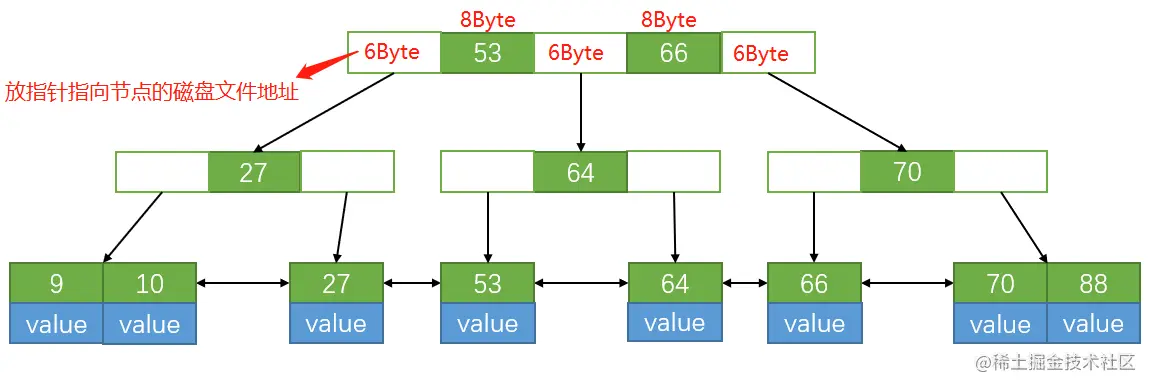 这里其实这个数据结构可视化网页画的 B+tree 还是不够清晰,只是画了个大概,下面我们就来看看它底层实际具体的数据结构👇👇👇