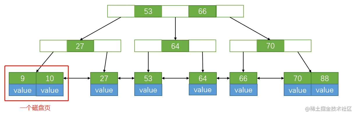 - 相邻的叶子节点之间,会用一个双向链表连接起来(关键)
