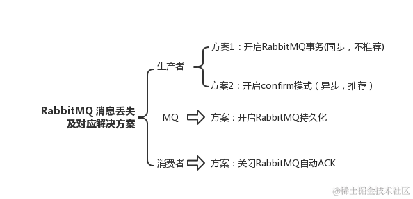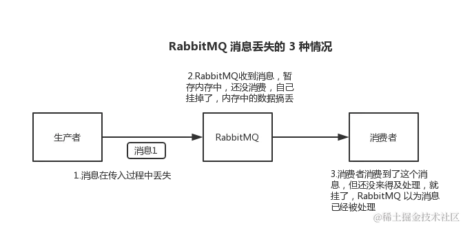 注意,哪怕是你给 RabbitMQ 开启了持久化机制,也有一种可能,就是这个消息写到了 RabbitMQ 中,但是还没来得及持久化到磁盘上,结果不巧,此时 RabbitMQ 挂了,就会导致内存里的一点点数据丢失。