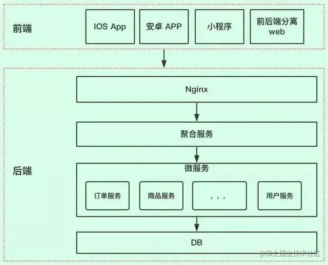 需要说明的是,有些小伙伴会回复说,这个架构太简单了吧,太low了,什么网关啊,缓存啊,消息中间件啊,都没有。因为这篇主要聊API接口,所以我们聚焦这一点。