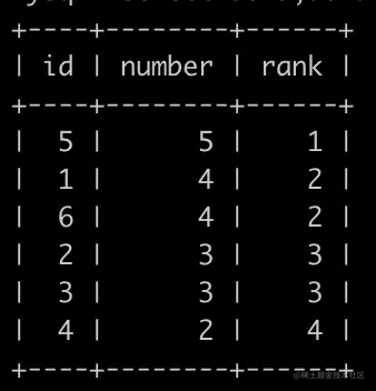 select id,number,dense_rank()over(order by number desc)as rank