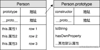 目前,大部分浏览器都支持 __proto__ 这个属性来访问构造函数的原型对象,就像这里,person.__proto__ 指向 Person.prototype 的对象存储空间。