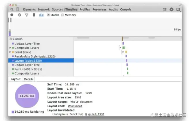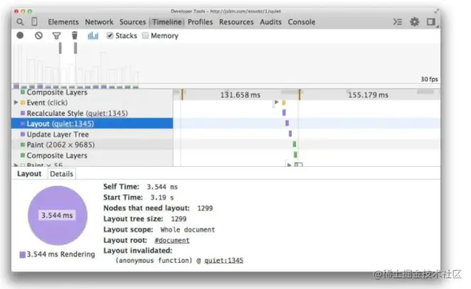 配合 chrome 的开发者工具,我们可以查看网站在运行时的性能。
