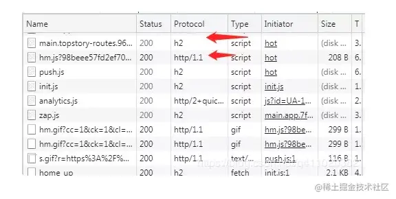 其中 h2 是指 HTTP2 协议,http/1.1 则是指 HTTP1.1 协议。