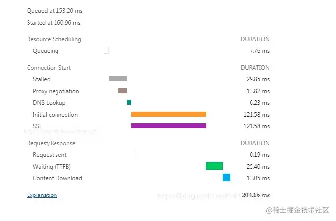 Stalled: 从 TCP 连接建立完成,到真正可以传输数据之间的时间差,此时间包括代理协商时间。