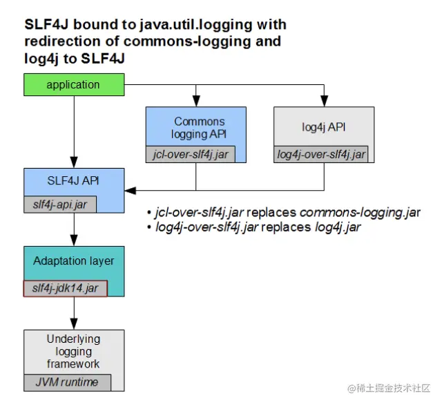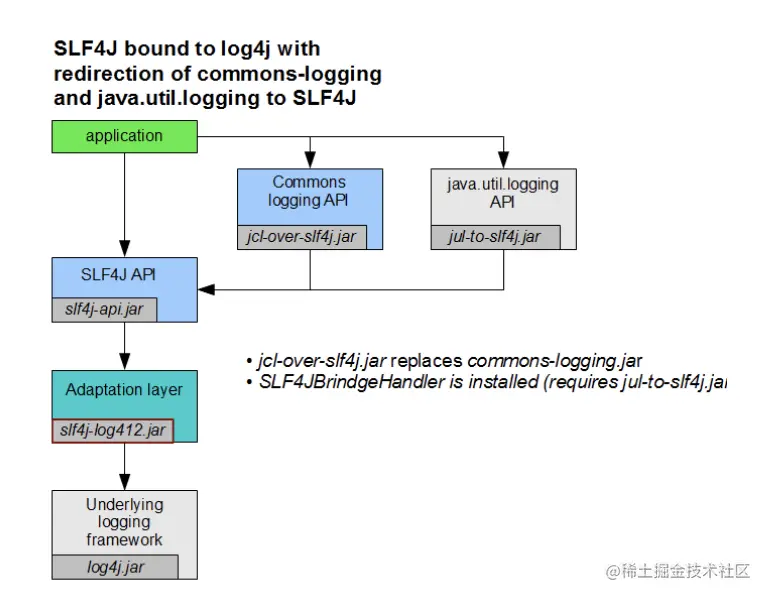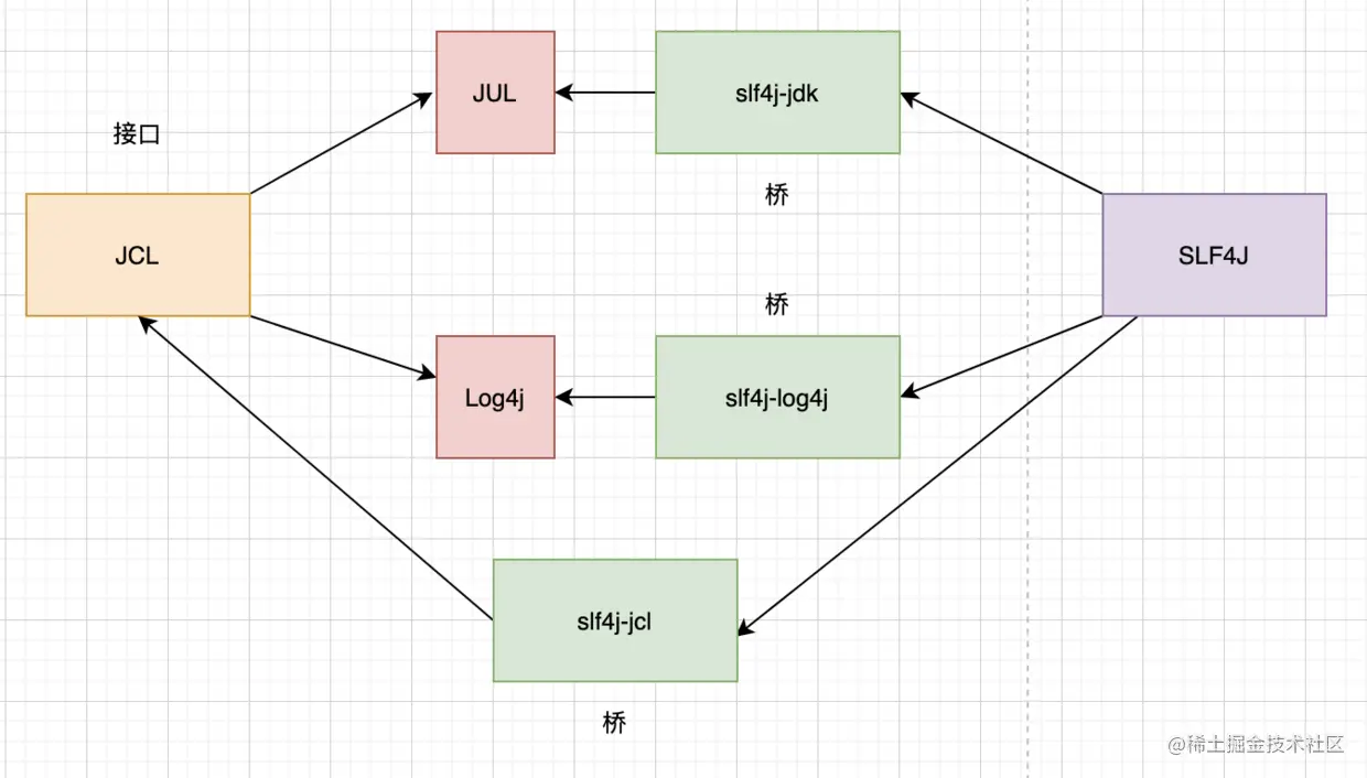 但巨佬之所以称之为巨佬,是因为他拥有超出普通人的惊人之处,他在 SLF4J 和 JUL、Log4j、JCL 之间搭了三座桥: