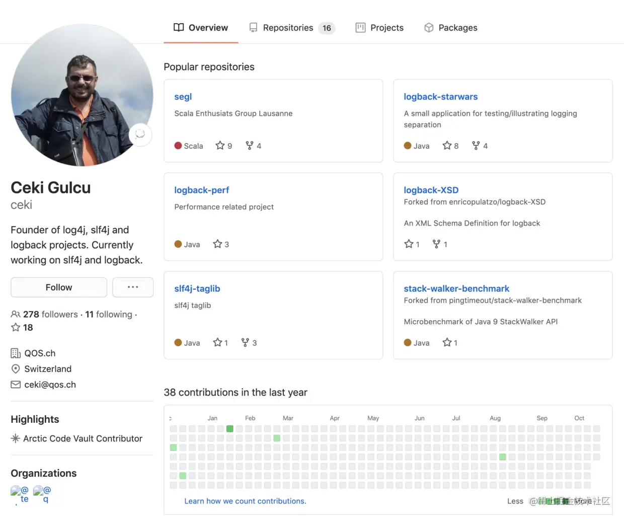 SLF4J 的作者就是 Log4J 和 Logback 的作者,他的 GitHub 主页长下面这样: