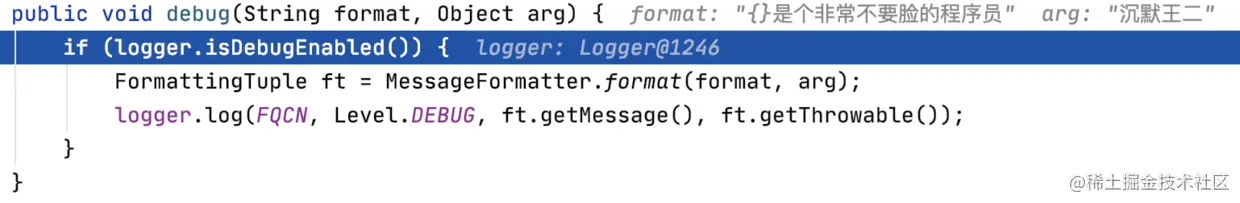 logger.debug("{},是个非常不要脸的程序员","沉默王二");