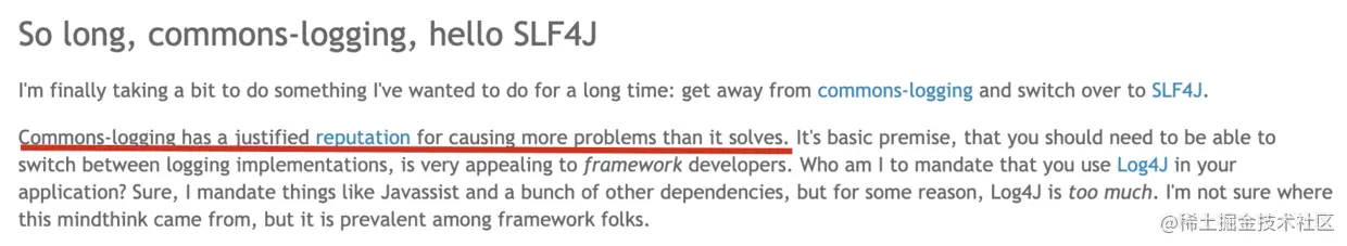 Ceki Gulcu 也觉得 JCL 不好,要不然他也不会在 2005 年自己撸一个名叫 SLF4J 的新项目,对吧?但出来混总是要付出代价的,SLF4J 只有接口,没有实现,总不能强逼着 Java 和 Apache 去实现 SLF4J 接口吧?这太难了,不现实。
