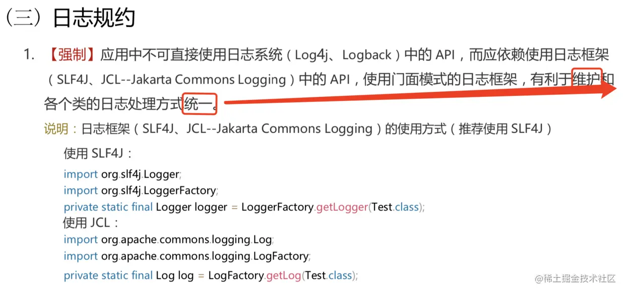 那看到这条强制性的规约,我就忍不住想要问:“为什么阿里巴巴开发手册会强制使用 SLF4J 作为 Log4J 的门面担当呢?”究竟这背后藏了什么“不可告人”的秘密?