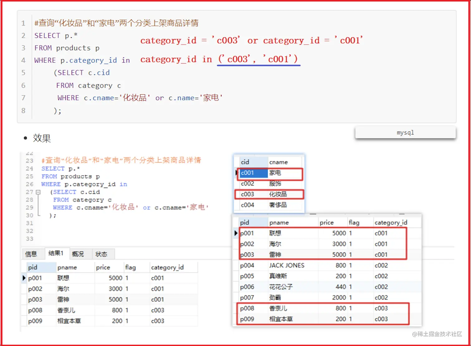 -- select cid from category where cname in ('家电', '化妆品');