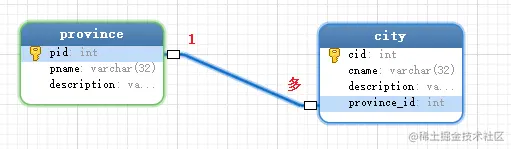 - 常见实例:客户和订单,分类和商品,部门和员工, 省份和城市