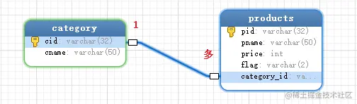 此时“分类表category”称为:主表,“cid”我们称为主键。“商品表products”称为:从表,category_id称为外键。我们通过主表的主键和从表的外键来描述主外键关系,就这让表与表之间产生了关系。