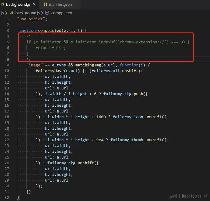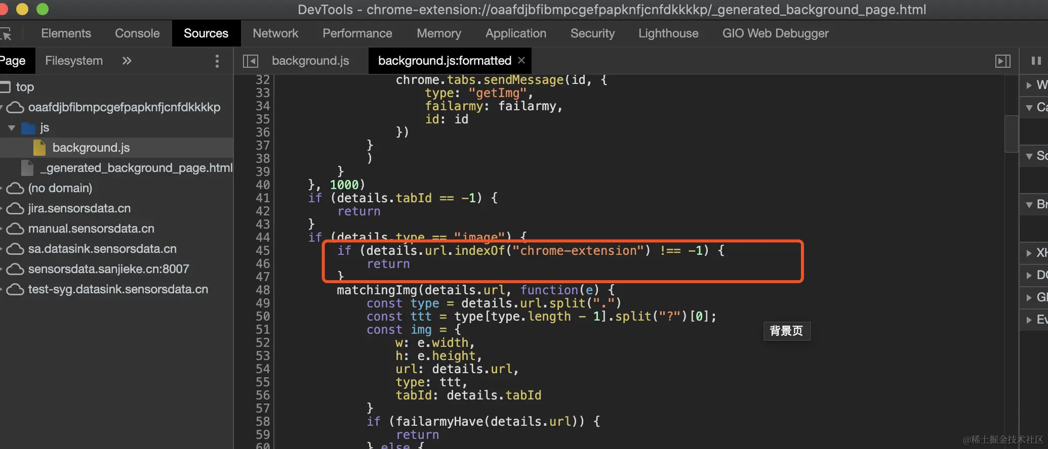 同事想爷本地测试也验证了刷量情况,并将插件源码获取到后,发给大家测试。基于想爷提供的源码,我从网上查阅、学习插件开发和调试的方法后,在本地调试插件。开启插件的调试模式,在插件的控制台中,呈现了快速大量的重复 image 请求发送出去。调试插件代码发现,该插件通过浏览器提供的 API 拦截浏览器的 image 请求后,又重新创建一个新的图片请求去下载图片。致命的是,该循环没有加限制条件,这个新的图片请求通过浏览器发送出去后,再次被拦截,又创建一个新的图片请求。