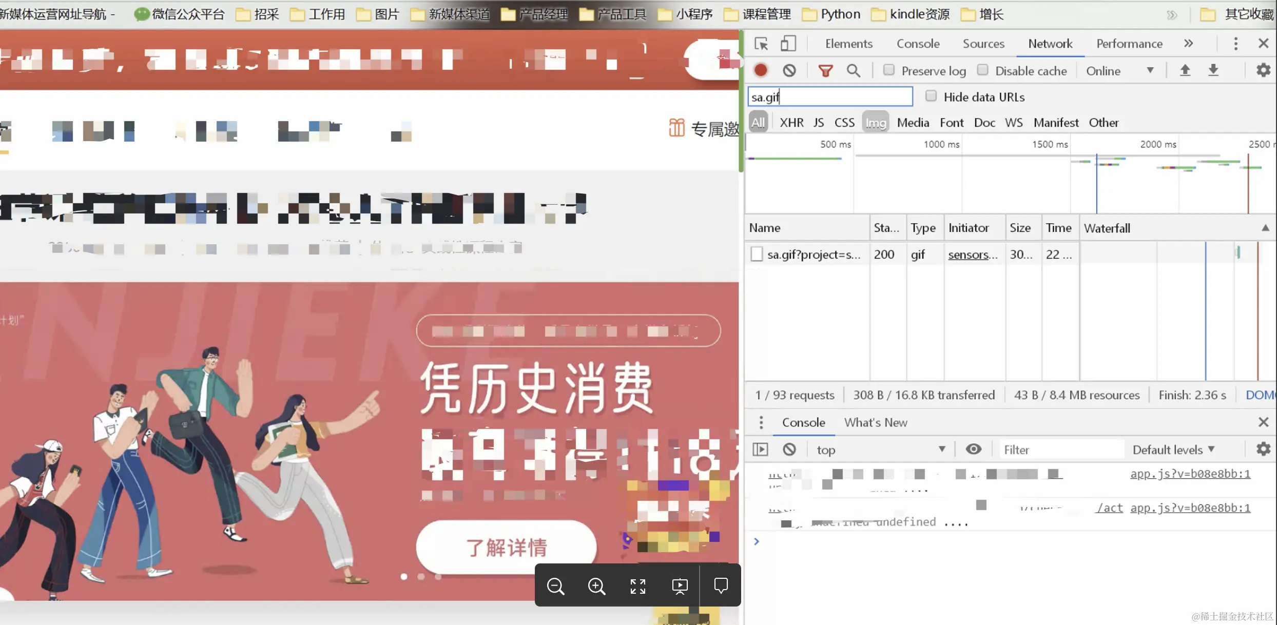 但是通过控制台,并没有发现大量数据刷量的请求,神策的 sa.gif 发送数据请求都是正常的,如图所示。