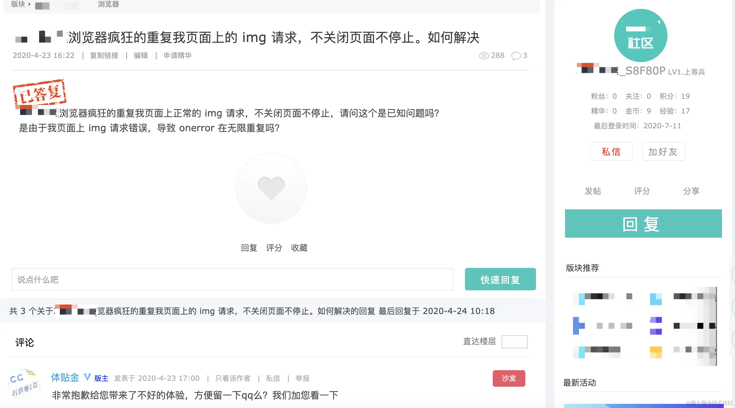 工作人员通过 QQ 联系了我,并与我沟通了基本情况。由于他们没有受理过类似问题,希望我提供复现的页面,但是我这边没有复现的页面。因此,这个方向的路也堵住了。