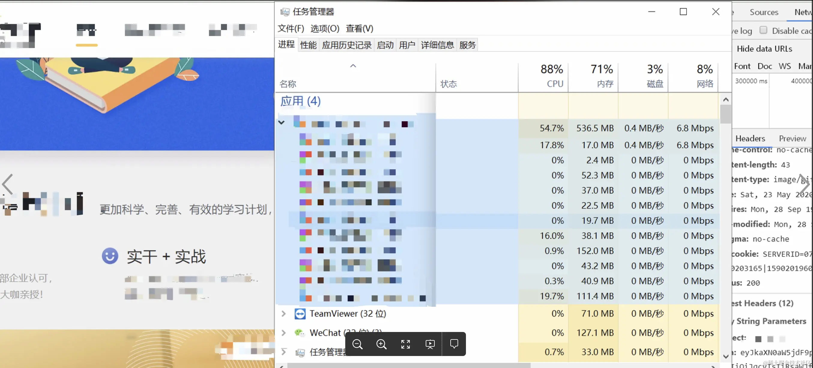 不能放弃,继续联系另一位用户。由于是上班时间,另一位用户电脑在家且不方便配合,约了周末在家配合我远程:当打开他电脑上的浏览器并访问客户的页面,用户反馈电脑风扇开始响起来了。我打开任务管理器,发现其 M 浏览器访问客户网页的 CPU 占比很高,如图所示。