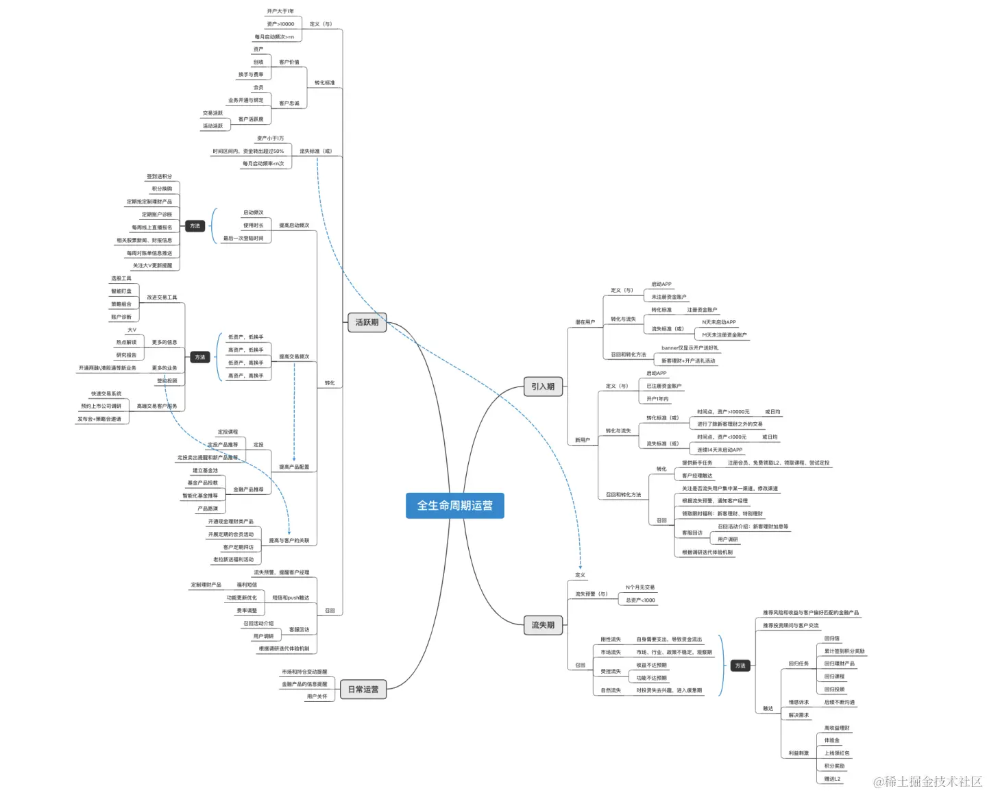 如下图是神策数据构建的客户全生命周期运营模型,该模型包括客户生命周期的划分、客户生命周期转化标准、客户生命周期的典型特征以及常见的运营手段等。
