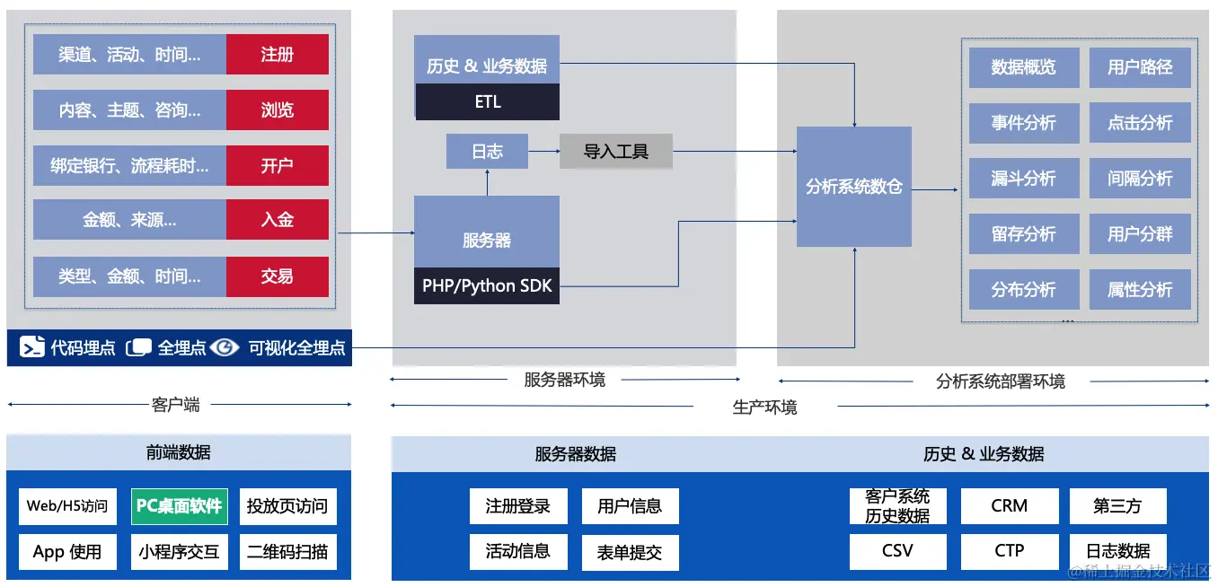 神策数据和业务部门进行了调研和需求分析,并设计了相关的业务方案,在数据采集与打通方面,助力海通证券实现: