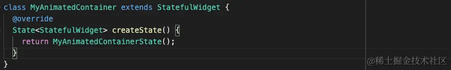 createState要返回一个State对象,然后创建一个类继承自State对象,类名为MyAnimatedContainerState