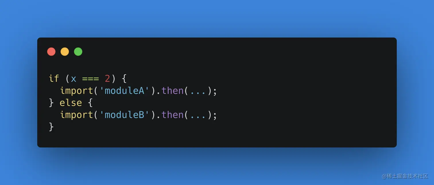 答:有,ES2020提案引入了import()函数,可以用来支持动态加载模块,两者区别在于,前者require是同步加载,后者是异步加载,具体用法请看使用文档 🔗