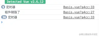 看到了么?组件销毁了定时器还在运行。 我们应该在销毁生命周期了销毁掉这个定时器