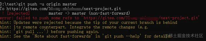 error: failed to push some refs to 'gitee.com/liang-zhich…' hint: Updates were rejected because the tip of your current branch is behind