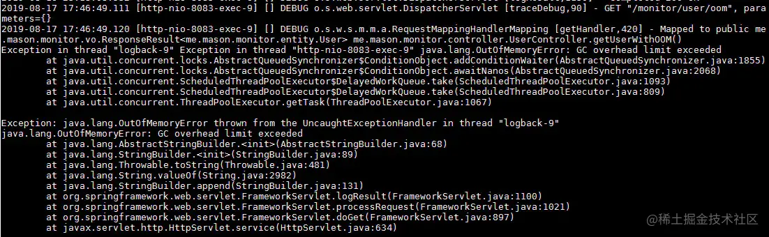 日志输出OOM报错: