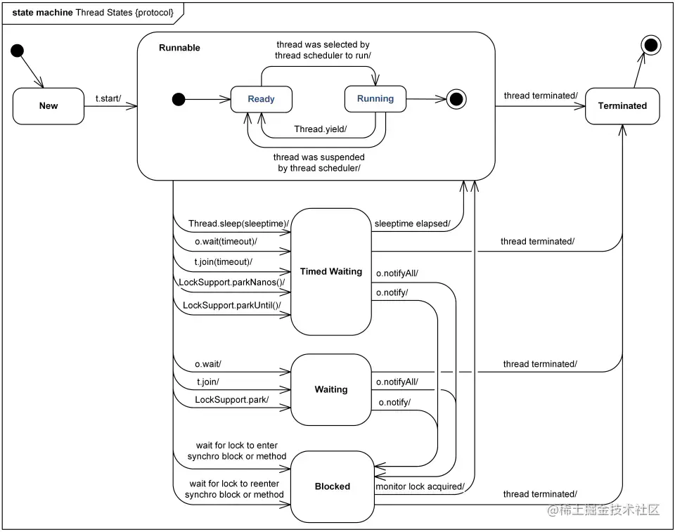 从下面这张图可以看出线程状态的变化情况: