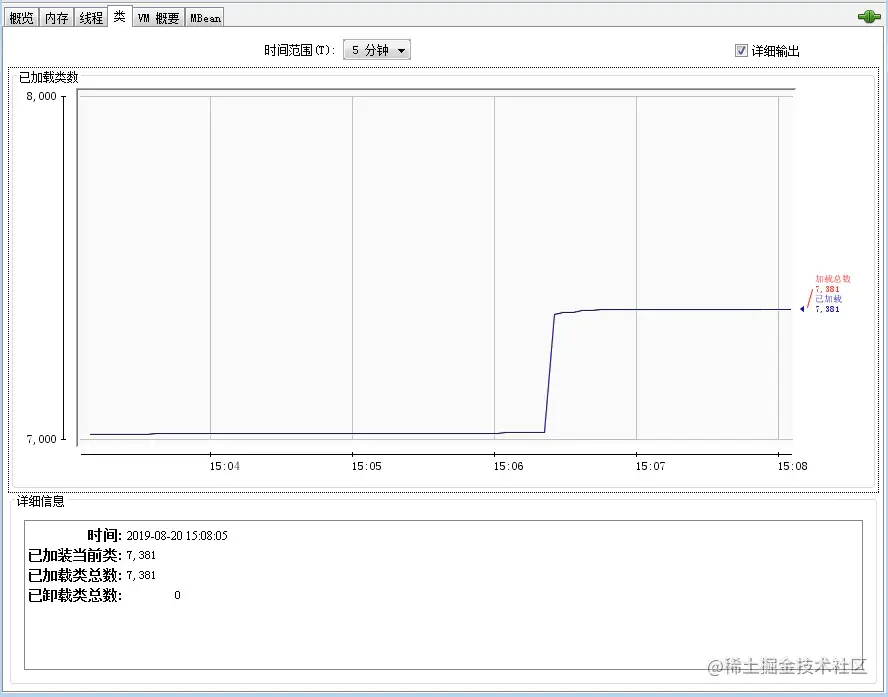 此功能主要用于查看加载的类总数,如果加载的类一直在增加,就得查看代码是否有不断产生类的代码了。如下图: