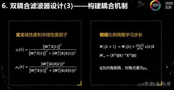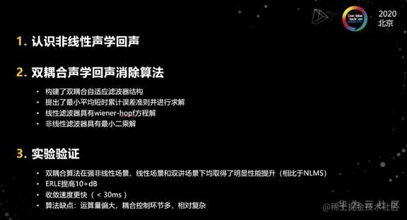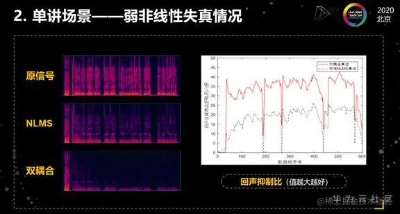 这个是我们团队提出来的一种算法,它的主要特点是,在构建滤波器模型的过程中结合了非线性声学回声的一些特性,因此它在抑制非线性回声方面,也体现出固有的优势。