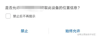 当用户拒绝并点击了“不再询问”,通过以上请求,会直接返回申请被拒绝,此时只能跳转到用户相关设置界面,由用户手动点击授权