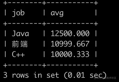 第2行表示Java岗位的中位数位置范围为[1,2]。因为Java岗位总共2个人,是偶数,所以要知道中位数,需要知道2个位置的数字,而因为只有2个人,所以中位数位置为[1,2]是正确的(即需要知道位置为1的12000与位置为2的13000才能计算出中位数为12500)