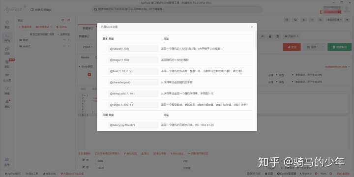 左下角有一个红色字体的内置mock字段变量,今天我们生成随机数据就是使用这个内置mock字段变量。