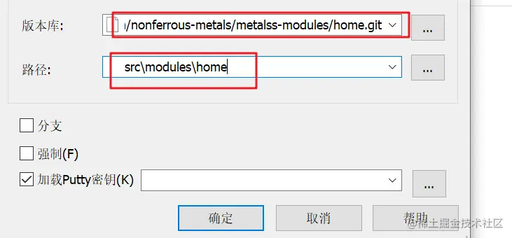 第二个框是本地的路径 从父git库的下一级