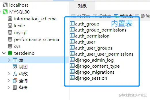 ④打开navicat/cmd 查看新建数据库testdemo中迁移后的新表。