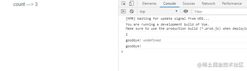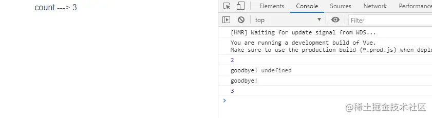 count会在初始运行时同步打印出来- 更改