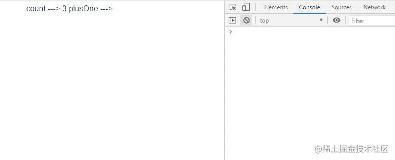 我们可以看到 plusOne 没有值。或者,它可以使用一个带有 get 和 set 函数的对象来创建一个可写的 ref 对象。
