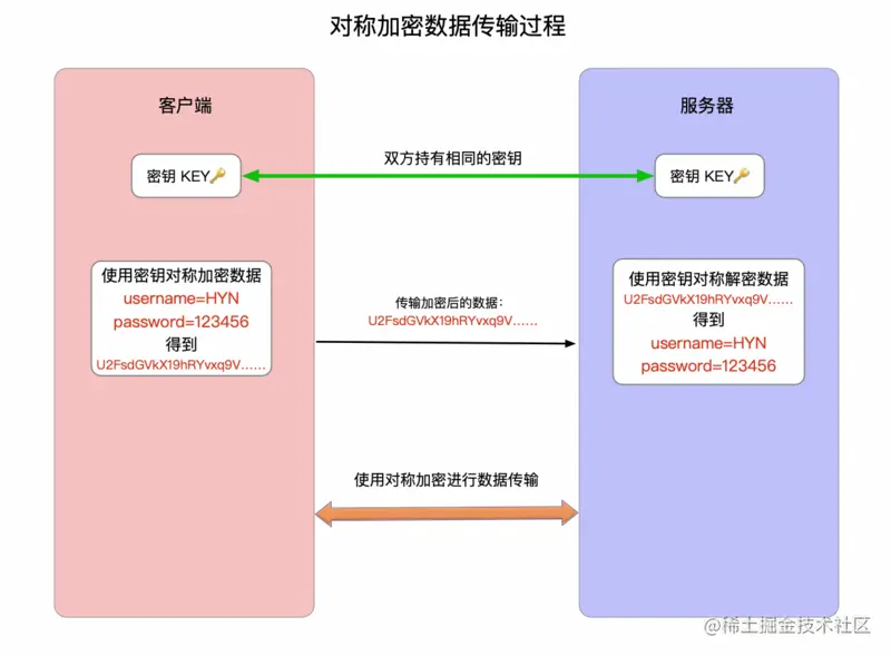 本文不对具体的加密算法做详细介绍,有兴趣的同学可以参考 对称加密算法详解,如果直接将对称加密算法用在 HTTP 中,会是下面的效果: