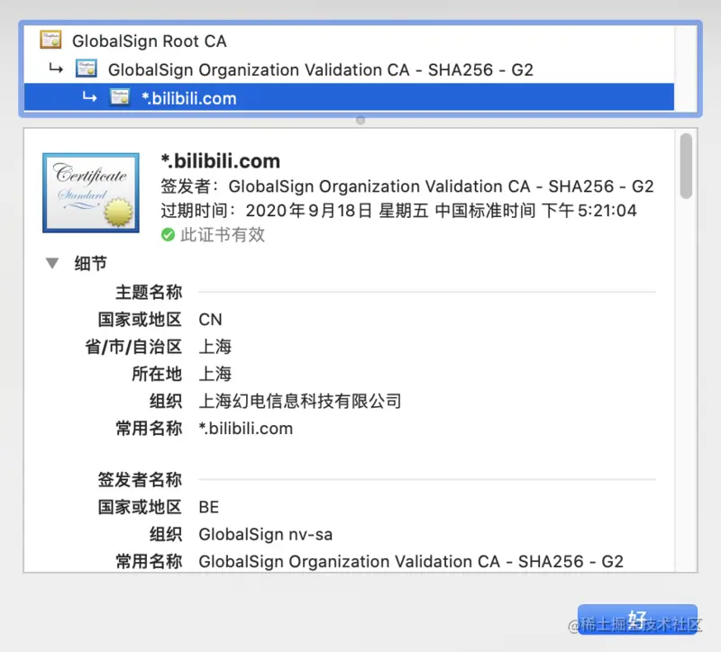 3.服务器响应客户端请求,将证书传递给客户端,证书包含公钥和大量其他信息,比如证书颁发机构信息,公司信息和证书有效期等。Chrome 浏览器点击地址栏的锁标志再点击证书就可以看到证书详细信息。