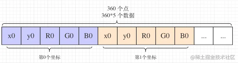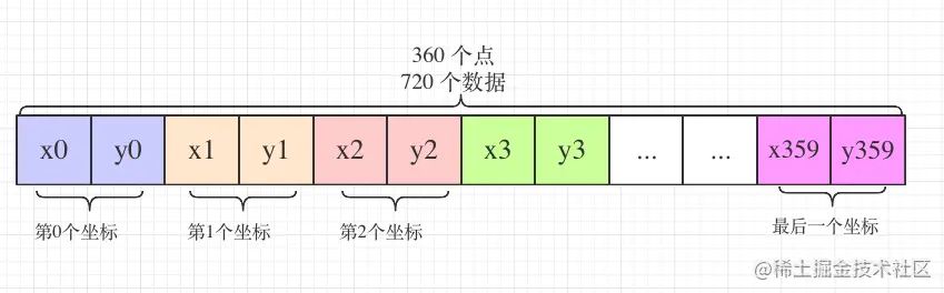 gl.vertexAttribPointer : 这个要重点讲解一下。我们回顾一下,我们用来存储圆顶点的 buffer,长什么样: