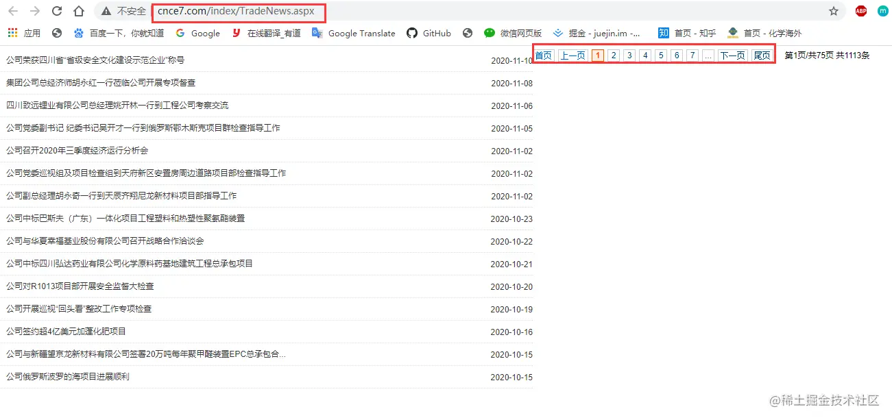 发现这个地址并没有新闻列表,审查元素可以发现真正的新闻列表地址